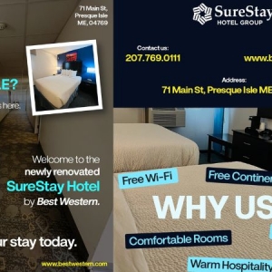 At SureStay, guests can enjoy a range of amenities designed to make their stay relaxing and convenient. Even as a low cost hotel in Presque Isle Maine, the focus remains on delivering excellent service and comfort.