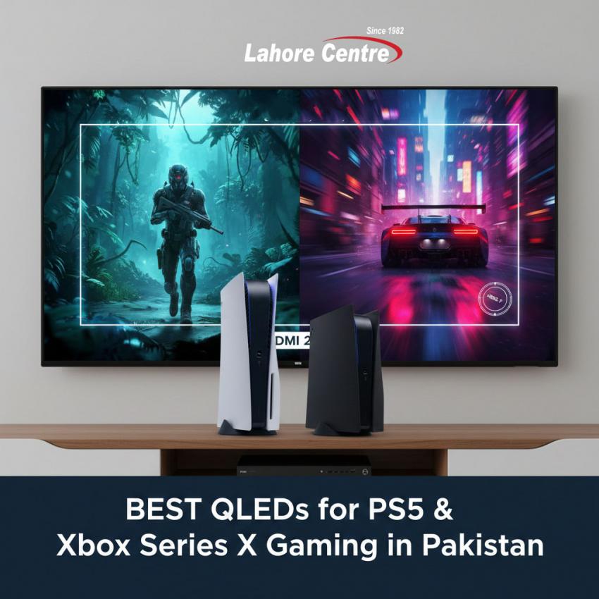 Level up your gaming! Discover the best QLED TVs for PS5 & Xbox Series X in Pakistan, featuring 120Hz, VRR, and low input lag, available at Lahore Centre.