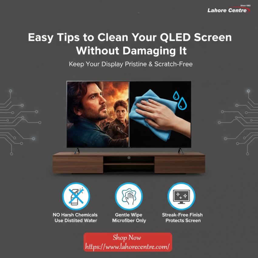 Keep your display pristine! Discover safe, expert-approved tips to clean your Samsung, LG, TCL, and Haier QLED screens without scratches or chemical damage at Lahore Centre.